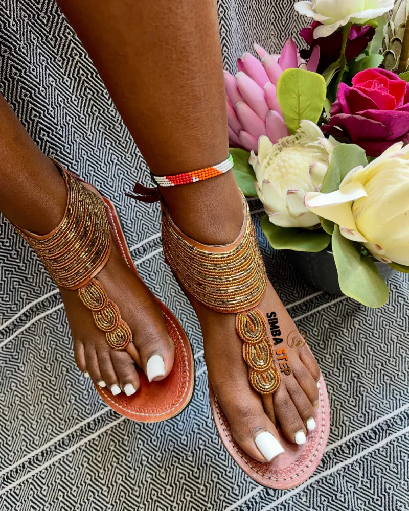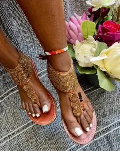 Pied nu à perles brown/gold avec lacets 🍂