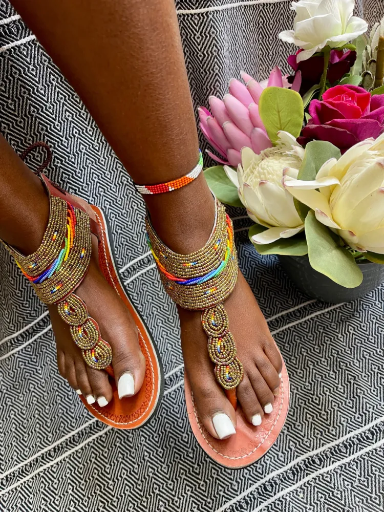 Pied nu en perles dorées/rainbow avec lacets 🍁